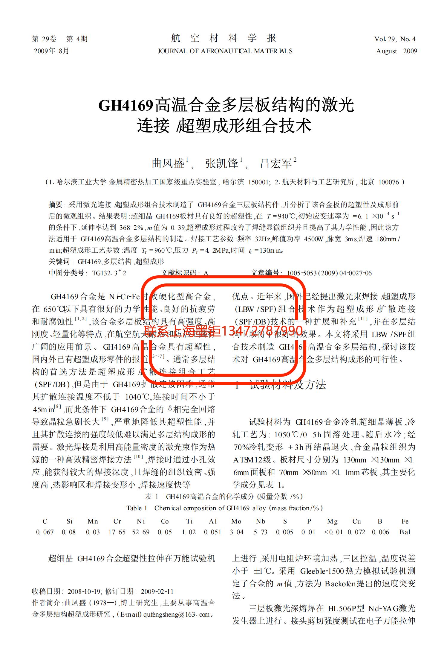 技术文章 GH4169高温合金多层板结构的激光连接_超塑成形组合技术 更新时间 2021-07-13 07:09:01 阅读 900 上一篇:GH4169高温合金多层板结构的激光连接_超塑成形组合技术 下一篇:形变及退火工艺对Fe47Mn30Co10Cr10B3双相高熵合金组织演变的影响