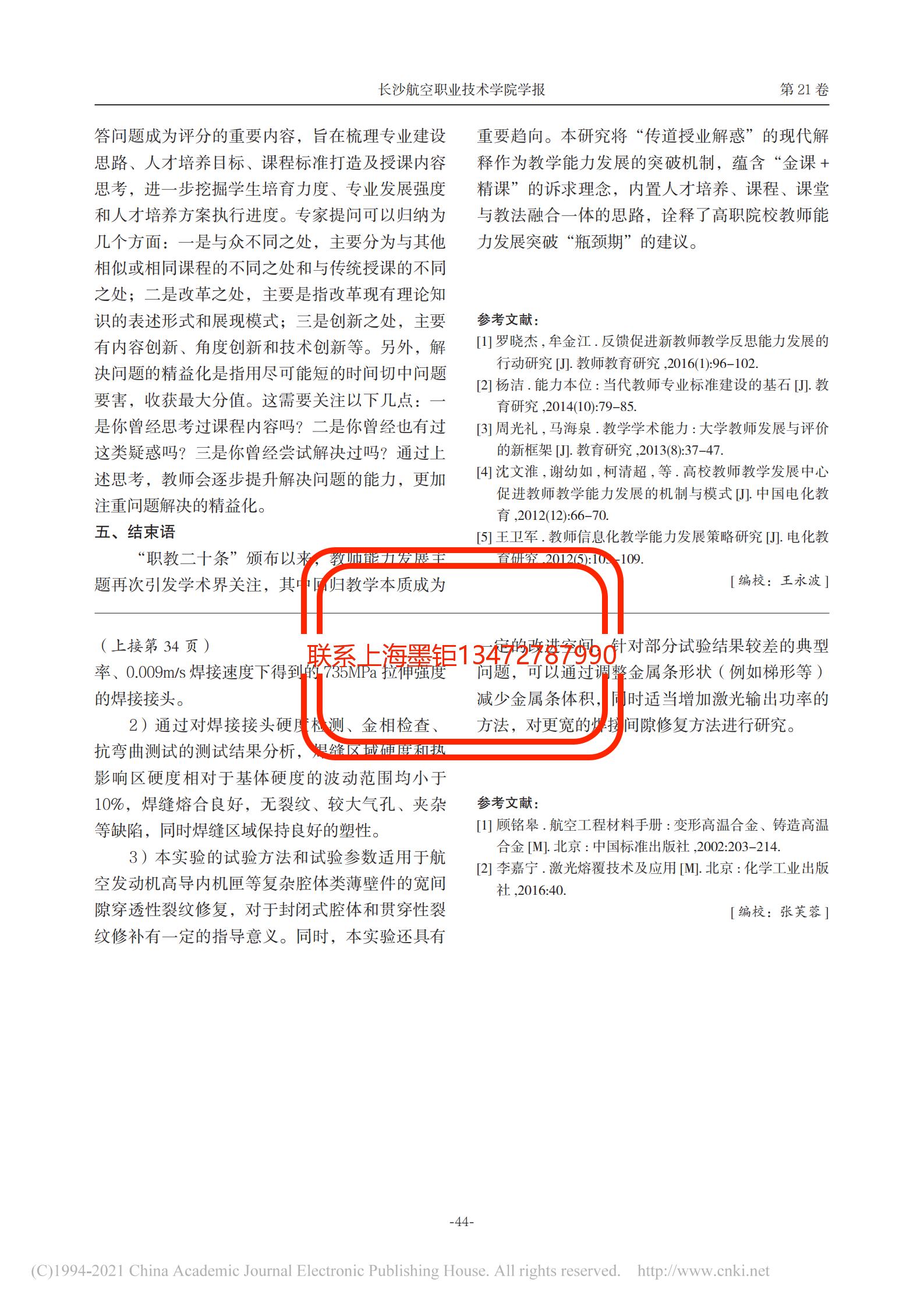 技术文章 GH3044高温合金激光熔覆焊接工艺研究 更新时间 2021-07-17 05:44:59 阅读 887 上一篇:冷却速率导致的薄壁效应对K465合金显微组织和持久性能的影响 下一篇:镍基高温合金氧化膜焊前激光清洗工艺研究