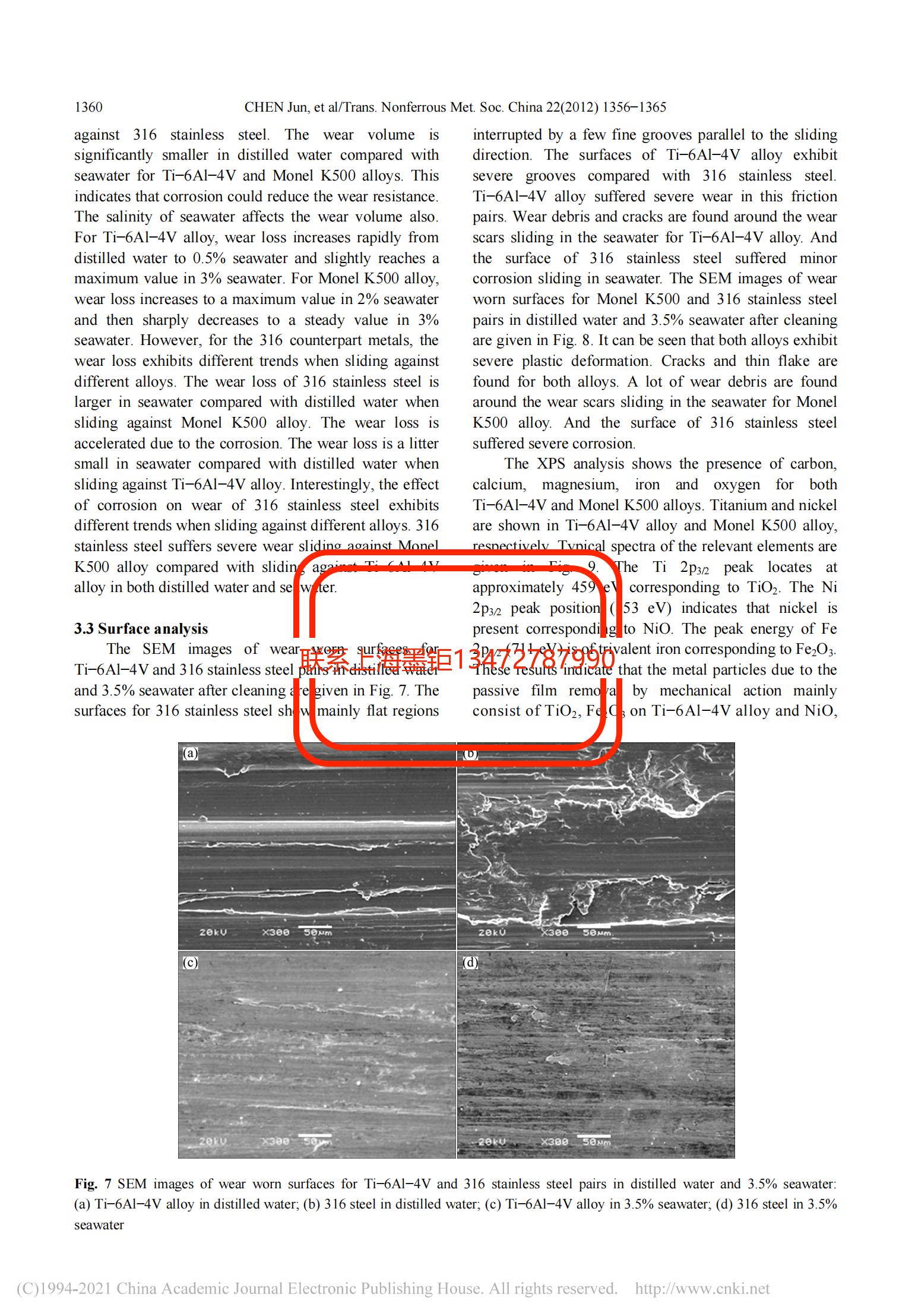 技术文章 Ti-6Al-4V和Monel K500合金在海水环境中与316不锈钢对磨时的腐蚀磨损性能 更新时间 2021-07-22 07:33:46 阅读 958 上一篇:工艺与微量元素对镍基合金焊接热影响区液化裂纹影响的研究进展 下一篇:不同应变比下GH3030合金的高温低周疲劳行为